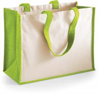 Ce sac en jute laminé et toile de coton est l'accessoire idéal pour toutes les occasions. Son design élégant et intemporel est complété par des anses en coton (longueur : 60 cm), qui vous permettront de le porter à la main ou à l'épaule. De plus, ses côtés en toile offrent la possibilité d'y imprimer des motifs personnalisés.