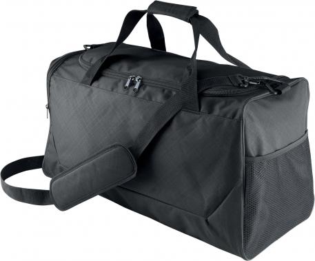 Ce sac de sport en polyester 600D avec enduction PVC offre une grande variété de rangement : 2 poches côté, une en filet et une pour ranger vos chaussures. Une lanière d'épaule amovible et des zips SBS complètent ce produit pratique et durable.