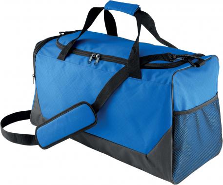 Ce sac de sport en polyester 600D avec enduction PVC offre une grande variété de rangement : 2 poches côté, une en filet et une pour ranger vos chaussures. Une lanière d'épaule amovible et des zips SBS complètent ce produit pratique et durable.